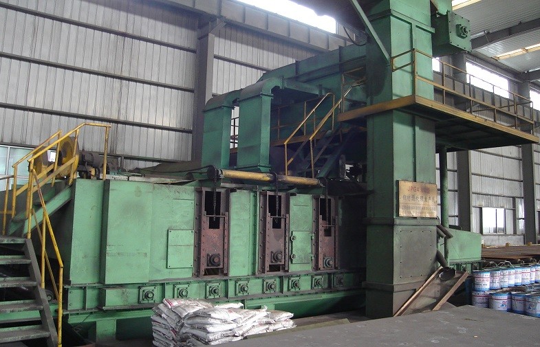Машина чистки взрывать съемки стальной плиты принадлежит к ролик-типу машине чистки взрыва, главным образом используемой для зданий, мостов и других индустрий с большим l-лучем, структурой H-луча стальной как части размера высокого усилия и исключением очищать поверхностную ржавчину.